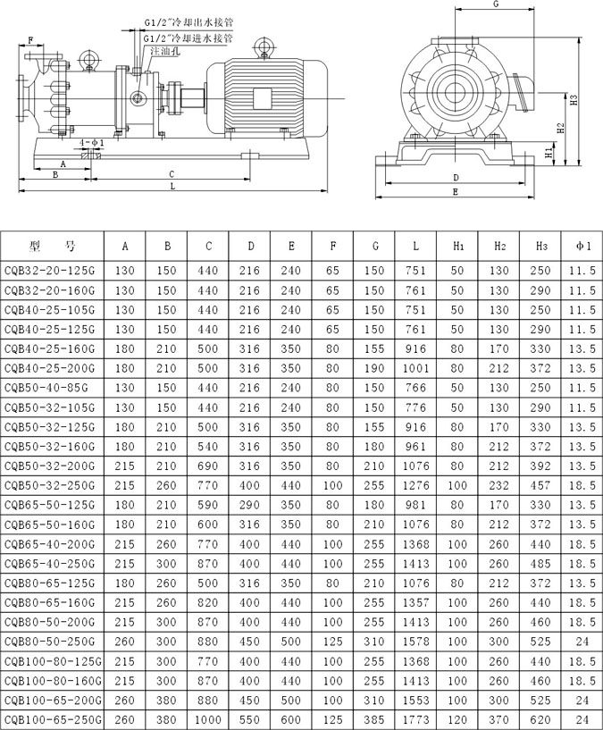 CQB-G型(xíng)高溫保溫磁力泵性能參數