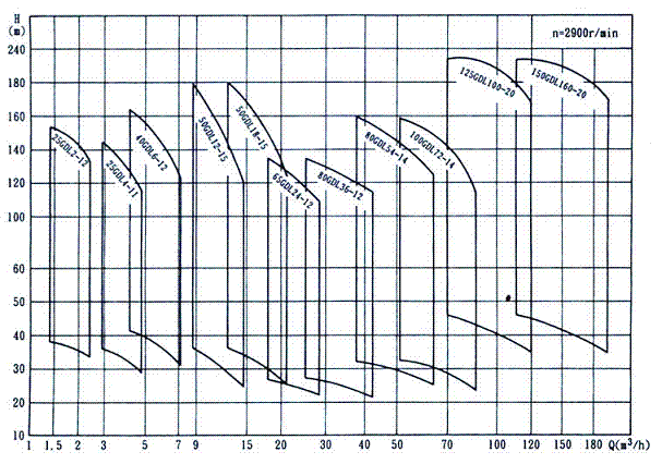 GDL係列立(lì)式多級管道離心泵曲線圖譜